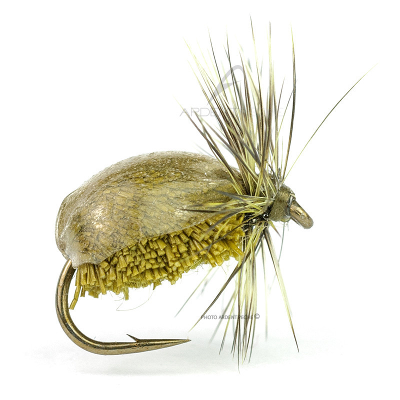 Imitation de coléoptère en coloris olive.Imite scarabées, hannetons, doryphores et bien d'autres.L'abdomen est fabriqué en poils de cervidés qui confèrent au modèle une bonne flottaison.Destiné à la pêche en lacs et réservoirs mais aussi efficace en rivière sur de nombreuses espèces.
