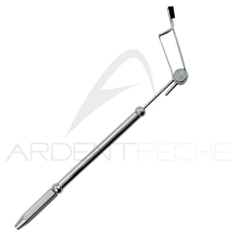 Pince articulée qui facilite l'enroulement d'une plume de coq sans la vriller. À son extrémité, se trouve un outil pour faire les demi-clés. - Longueur 12 cm