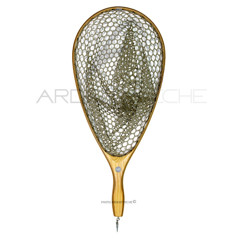 Beautiful oval-shaped maple wood landing net. Anti-snag polymer mesh, both superb and effective.