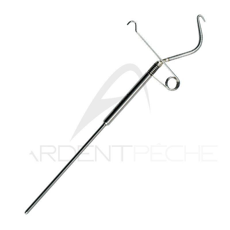 Le design spécial de ce finisseur autorise de très petits noeuds utile quand on monte de minuscules mouches. Loutil tourne sur lui-même pour réussir des têtes parfaites.