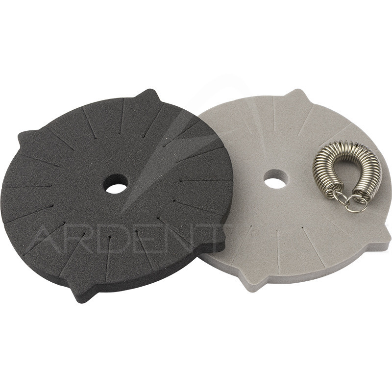 Rondelle de mousse compacte de 65 mm de diamètre, à placer sur le pieds de votre étau ou à côté pour faire sécher vos mouches. Comporte 16 encoches taillées dans la mousse pour y placer la courbure de lhameçon et ne pas la déchirer.