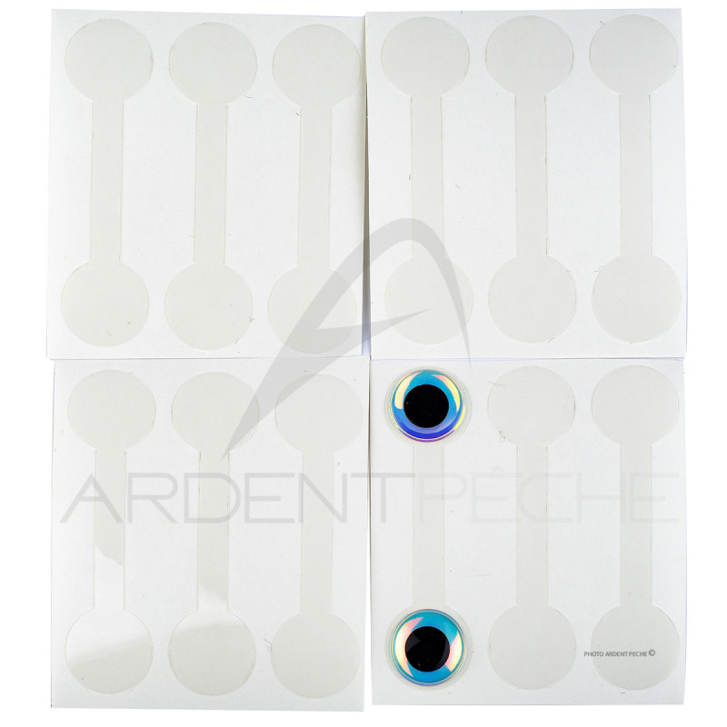Système de languettes plastiques fines et souples pour attacher les yeux des streamers mer et rivières. Choisissez vos yeux adhésifs, placez-les sur la languette puis attachez le tout sur votre mouche. Ce système permet de placer des yeux 3D ou plats plus facilement.- Pochette de 12 languettes, dont une livrée avec une paire d'yeux 3D perles.3 tailles :- 6 mm- XL 13 mm- Jumbo 19 mm (si vous aimez les très grands yeux pour vos streamers brochet par exemple)
