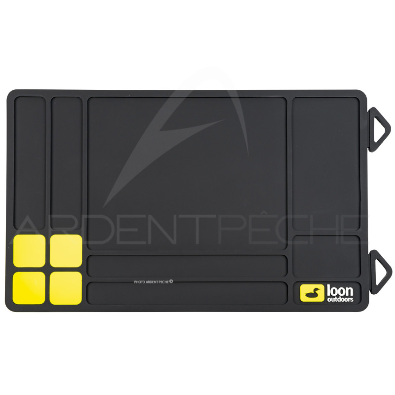 Le tapis Tying Mat est LA solution pour les monteurs qui passent la plupart de leur temps à l'étau à chercher des outils plutôt qu'à monter des mouches.Que l'objectif soit de fabriquer une douzaine de pheasant tail en une heure ou simplement de revenir à une station bien rangée, les compartiments soigneusement divisés permettent aux monteurs de garder les outils et les matériaux bien organisés. La construction en silicone est facile à nettoyer et comporte 4 compartiments magnétiques, parfaits pour maintenir les hameçons et les perles en place. Pour le monteur nomade qui ne dispose pas d'un espace dédié, ce tapis transforme n'importe quel petit espace en une station de montage mobile.- 25 x 45 cm- 4 supports magnétiques (en jaune) pour hameçons, perles ou mouches- Protège le bureau-La résine UV durcie se détache facilement