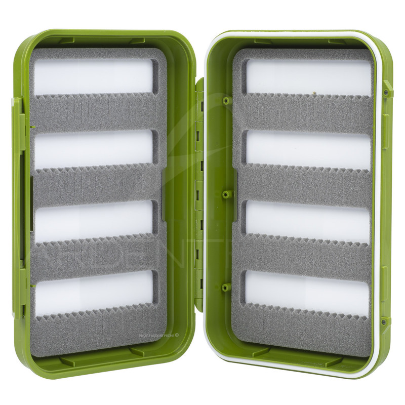 Modèle conçu pour contenir des grosses nymphes, streamers comme des zonkers ou des stichs. Les longues fentes de mousses permettent de régler le positionnement de la mouche en faisant glisser la pointe de l'hameçon. - Dimension : 155 X 110 X 40 mm- Contenance environ 144 mouches- Plaques mousses amovibles- Boite étanche