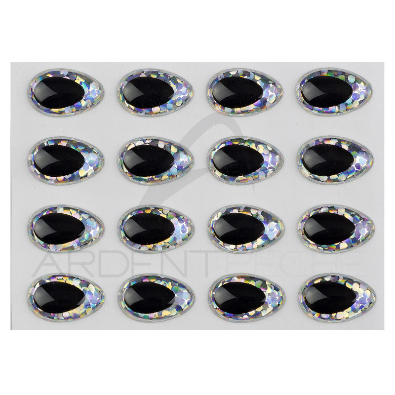 The eyes called "3D Epoxy Teardrop Eyes" are perfect for medium and large flies. The teardrop-shaped eyes perfectly illustrate the silhouette of the streamer.- 8 mm pack of 20 eyes- 9 mm pack of 20 eyes- 10 mm pack of 20 eyes- 12 mm pack of 16 eyes
