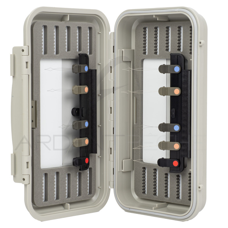 Boite dédiée aux passe-fils. Très pratique quand la lumière vient à manquer ou que l'on a du mal à voir de près. Vous enfilez toutes vos mouches préférées sur les passe-fils, vous insérez l'extrémité de votre bas de ligne dans la boucle du passe-fil, vous tirez sur la mouche et le fil passe automatiquement dans l'illet de l'hameçon. Il ne vous reste plus qu'à faire votre nud. Les passe-fils sont rangés sur 2 plaque amoviblesDimensions : 19.5 x 11.4 x 4.2 cm