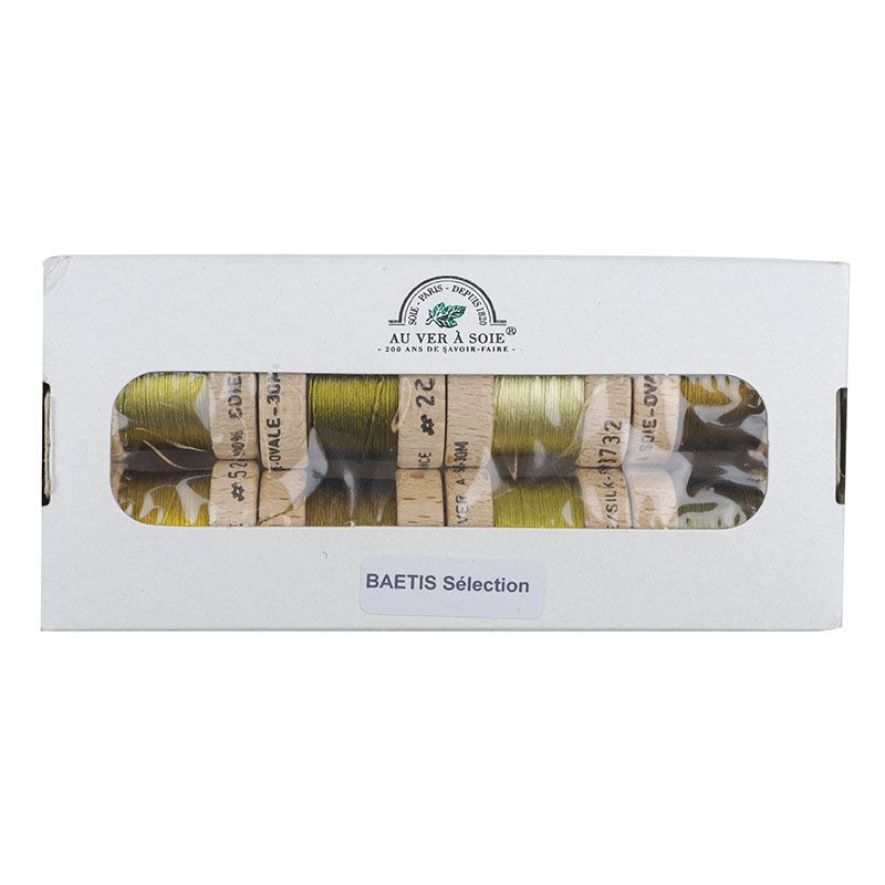 Special selection of Oval (floss) available in various olive shades for tying imitations of the large Baetidae family, notably the most commonly known as "Olives" (Large Dark Olive, Medium Olive…), other species (Blue Wing Olive, Olive Upright…), with color variations according to sex and stage (Subimago, Imago).