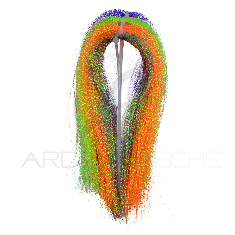 Ces filaments fins, irisés et torsadés de 30 cm de longueur sont très utilisés pour le montage de tous les streamers à truites et à carnassiers.Assortiment de 5 coloris