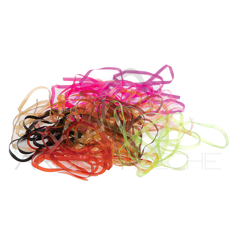 Bande rugueuse de 2 mm, élastique, translucide et très solide, pour les corps de chiros, nymphes et émergentes.