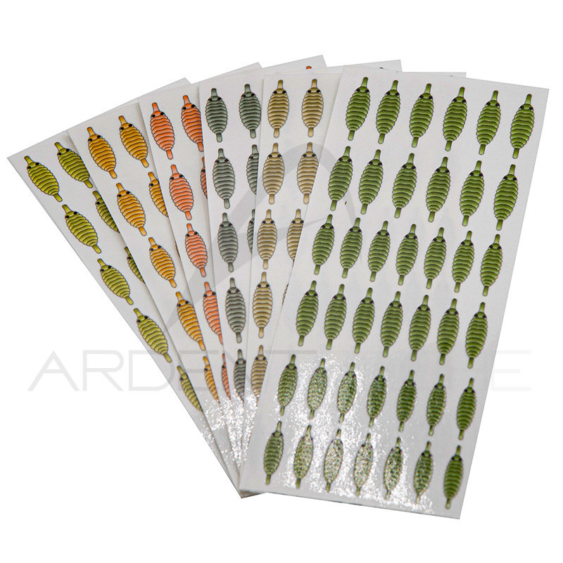 Dos de gammare prédécoupé, translucide et autocollant en assortiment de 3 tailles avec un total de 40 pièces.