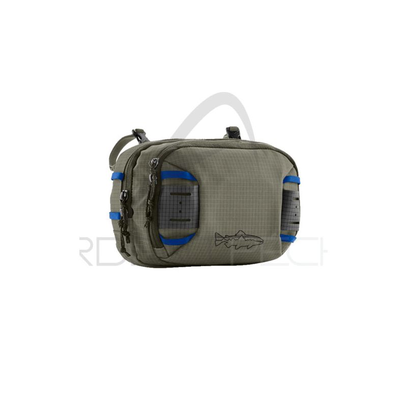 - Un aimant intégré sur l’avant du sac maintient temporairement les mouches, pinces ou coupe-fils pour des changements rapides