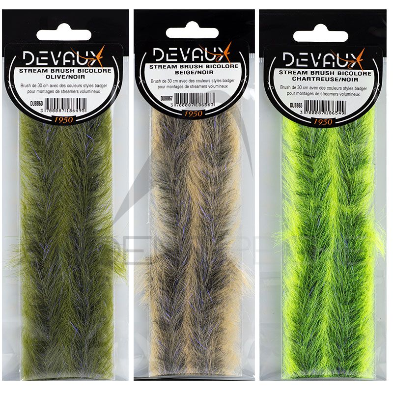 Le Stream Brush Bicolor est donc un matériau à la fois volumineux, lumineux et très attractif, idéal pour concevoir des streamers puissants et des imitations réalistes destinées aux carnassiers et aux poissons marins.